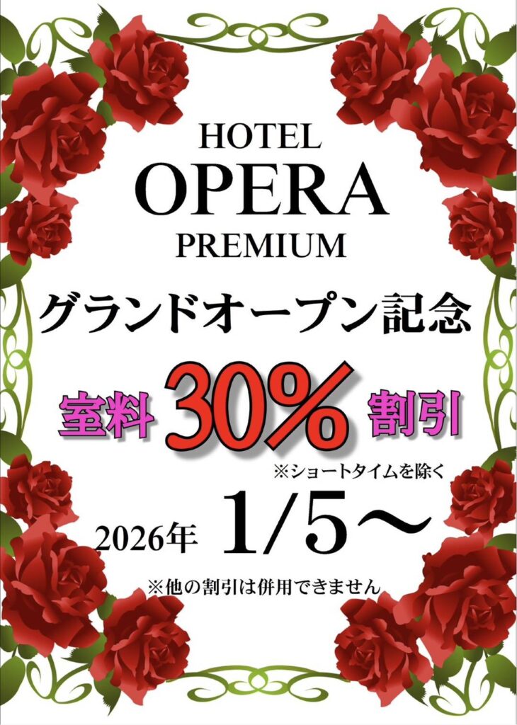 2026年1月5日~ グランドオープン記念 室料30%割引