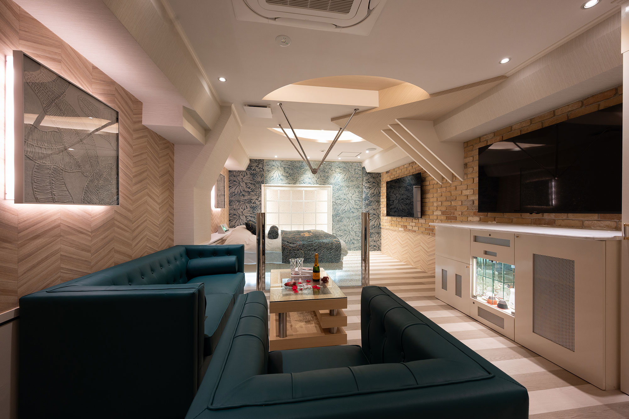 設備:サウナ/マッサージ機/大型65インチテレビ×2台/ReFa(リファ)ドライヤー/ReFa(リファ)へアアイロン/空気清浄機・加湿器/電子レンジ/持込み用冷蔵庫/コーヒーマシーン/電話/エアコン/電気ポット/無料Wi-Fi