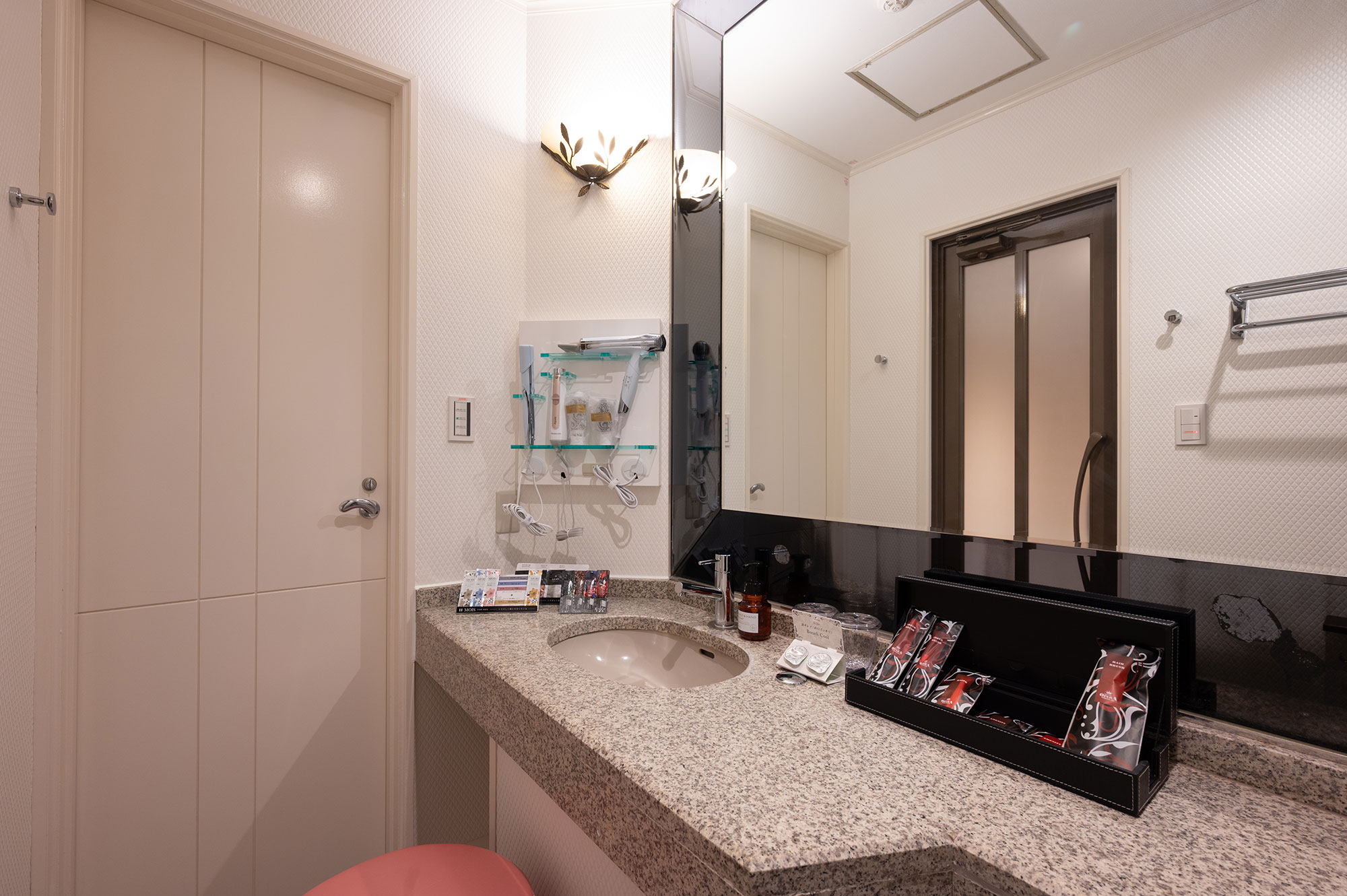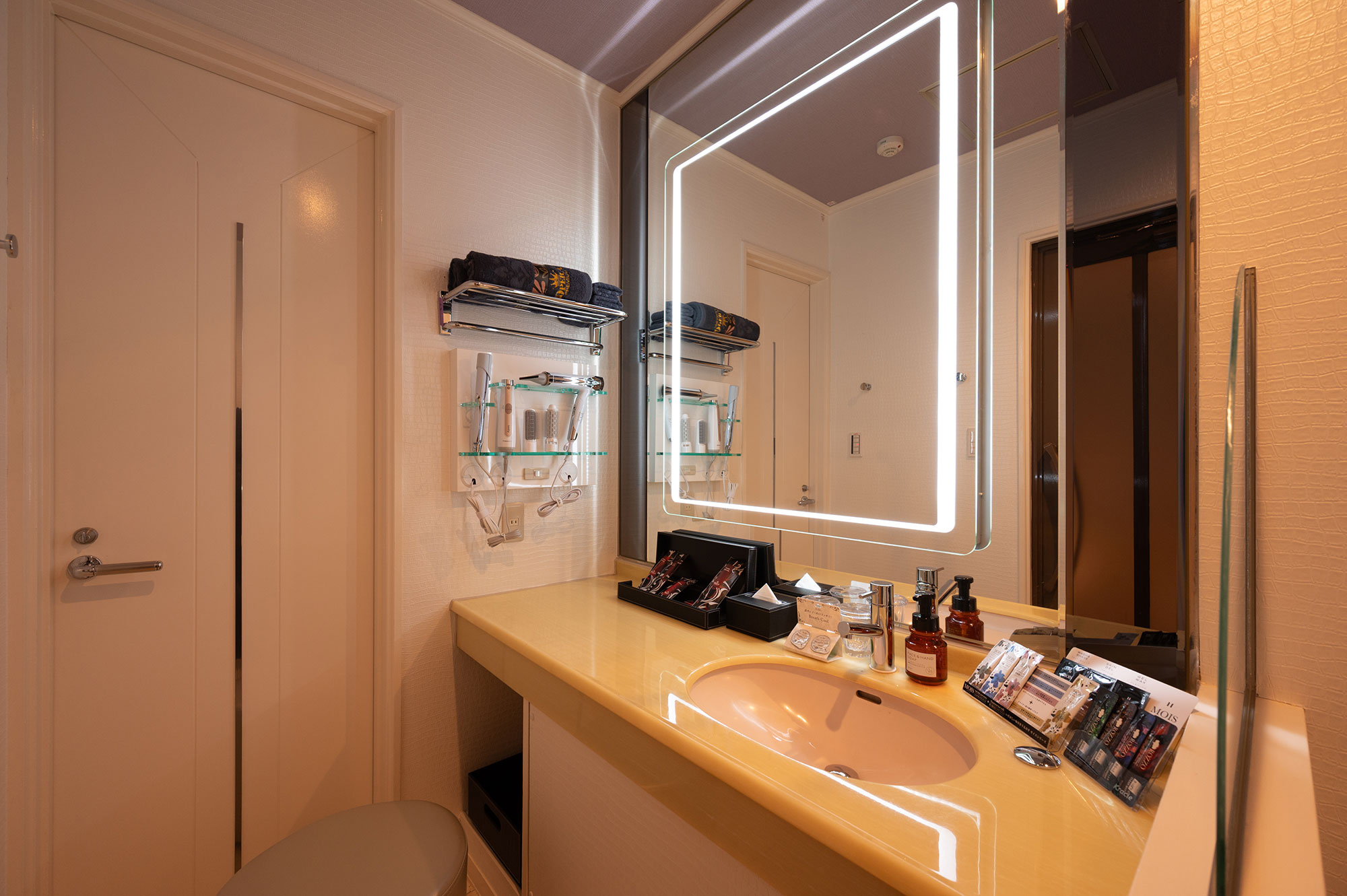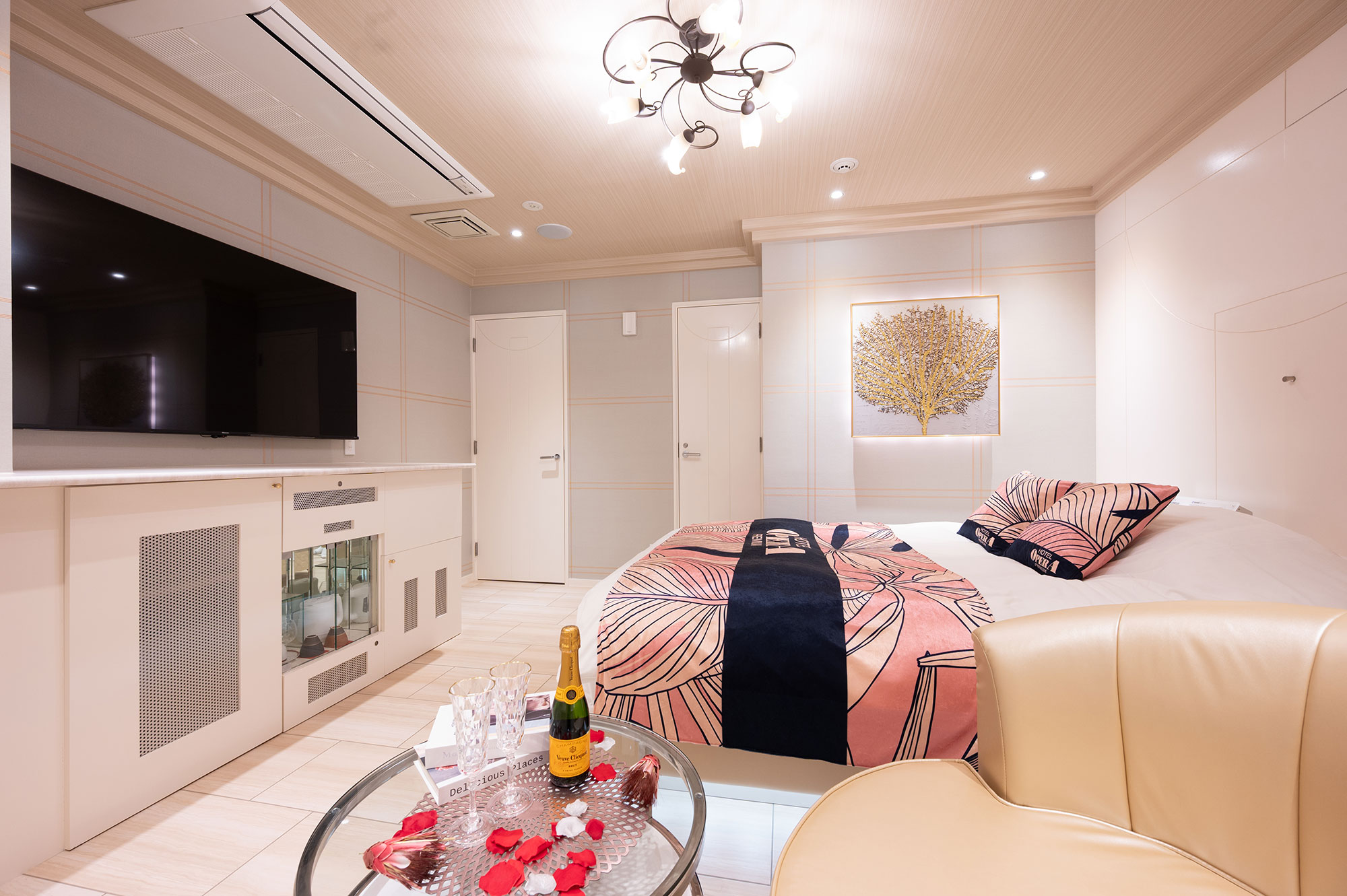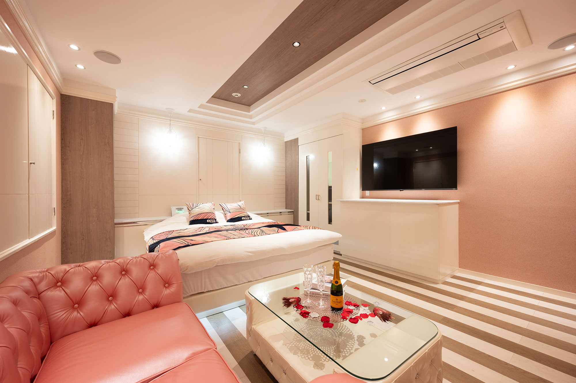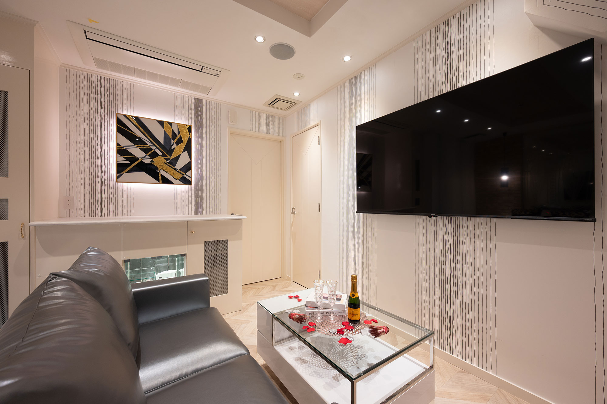 設備:大型65インチテレビ/ドライヤー/ReFa(リファ)へアアイロン/空気清浄機・加湿器/電子レンジ/持込み用冷蔵庫/コーヒーマシーン/電話/エアコン/電気ポット/無料Wi-Fi