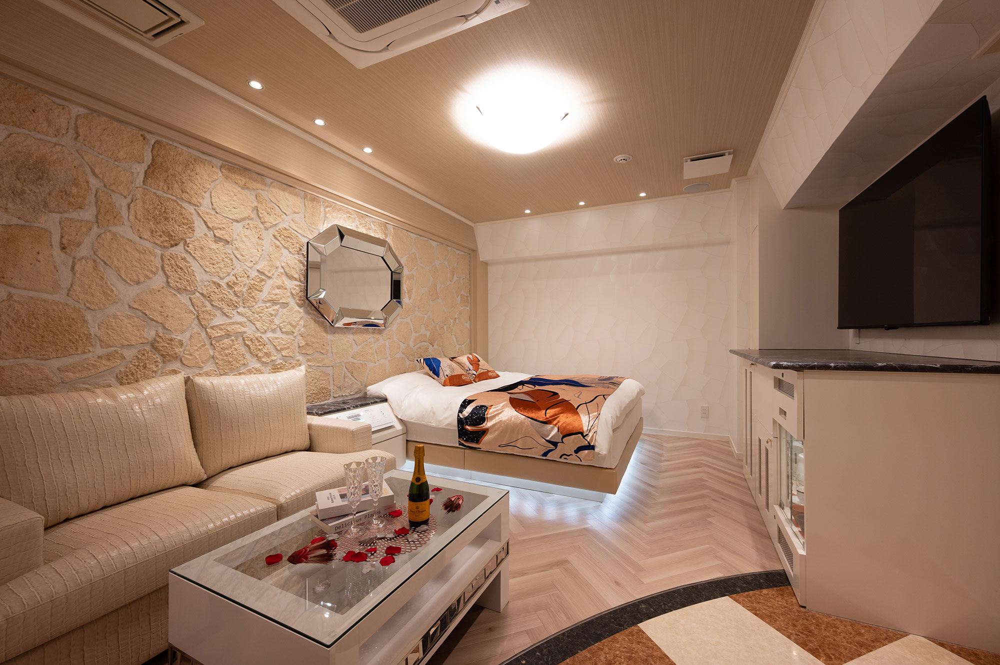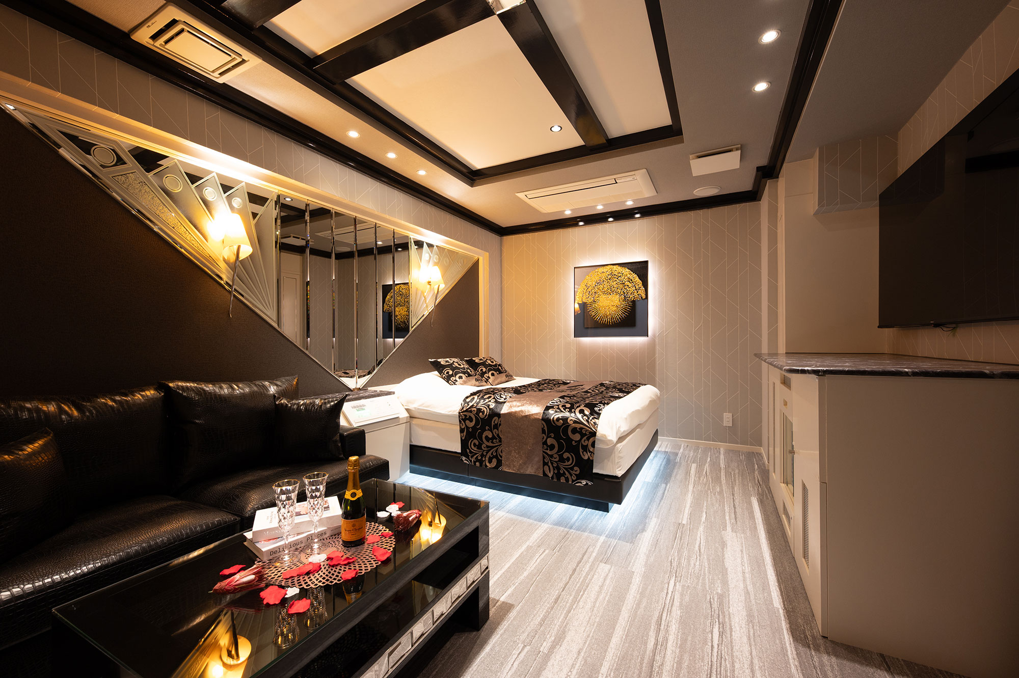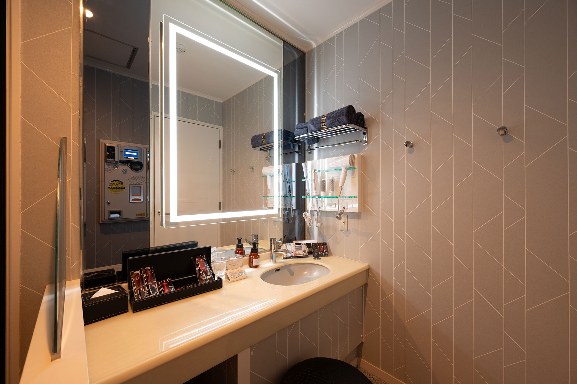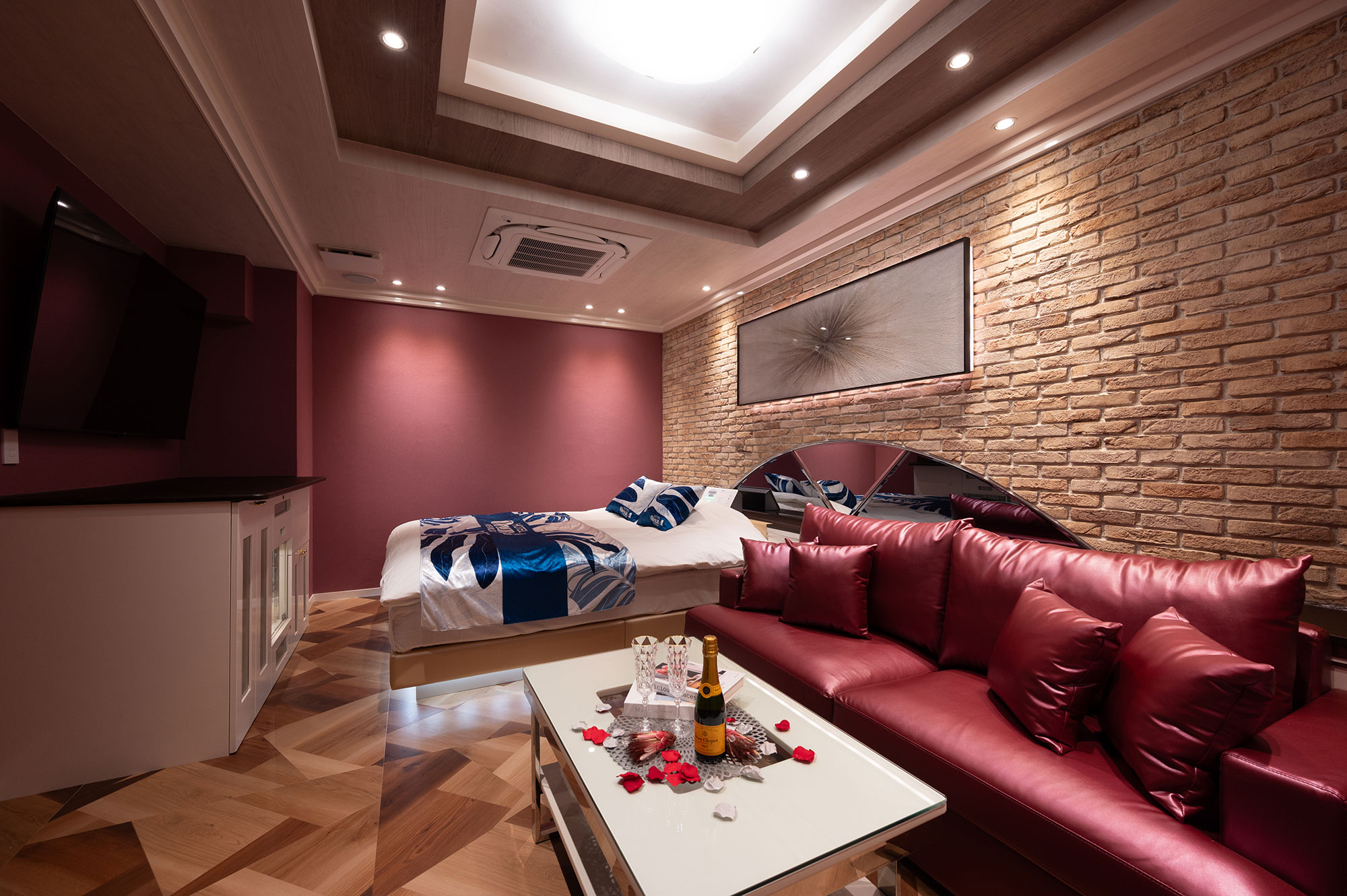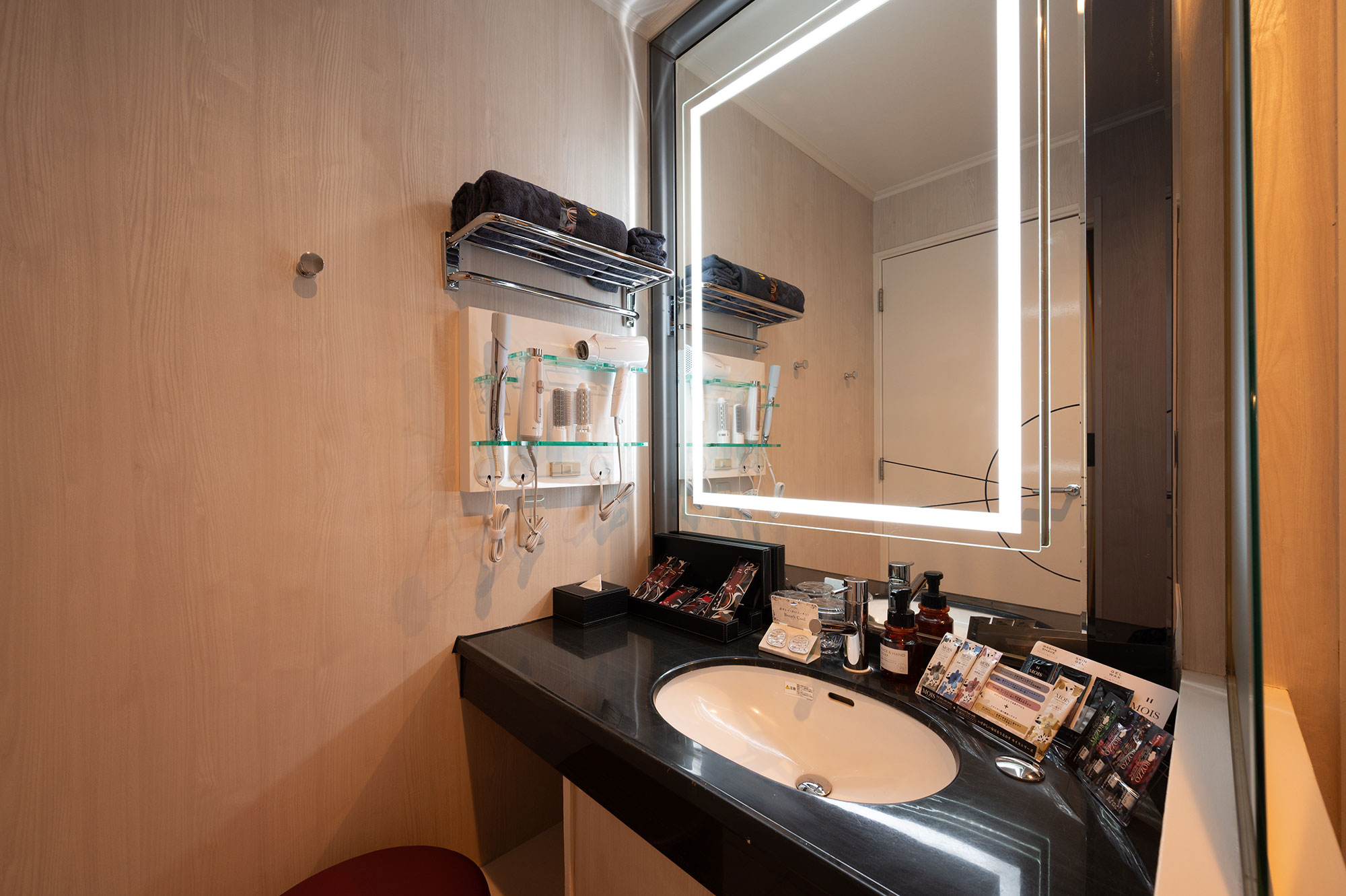 設備:大型65インチテレビ/ドライヤー/ReFa(リファ)へアアイロン/空気清浄機・加湿器/電子レンジ/持込み用冷蔵庫/コーヒーマシーン/電話/エアコン/電気ポット/無料Wi-Fi