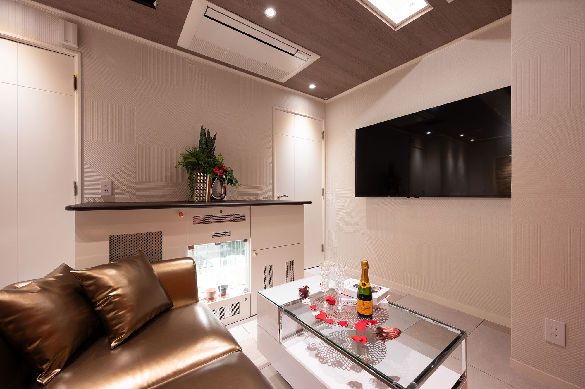 設備:大型65インチテレビ/ドライヤー/ReFa(リファ)へアアイロン/空気清浄機・加湿器/電子レンジ/持込み用冷蔵庫/コーヒーマシーン/電話/エアコン/電気ポット/無料Wi-Fi