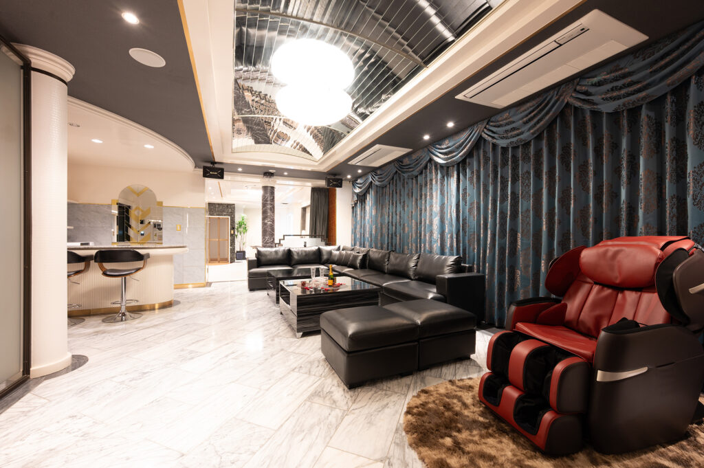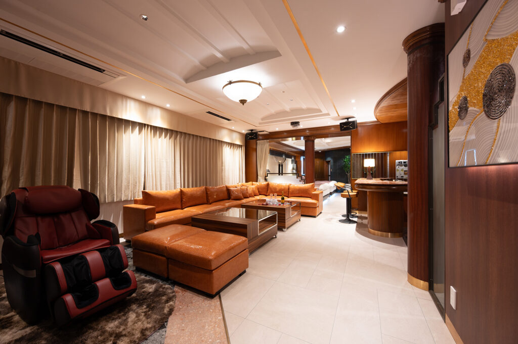 設備:サウナ/カラオケ/マッサージ機/大型85インチテレビ/大型65インチテレビ/ReFa(リファ)ドライヤー/ReFa(リファ)へアアイロン/美顔器/空気清浄機・加湿器×2台/電子レンジ/持込み用冷蔵庫/コーヒーマシーン/電話/エアコン/電気ポット/無料Wi-Fi
